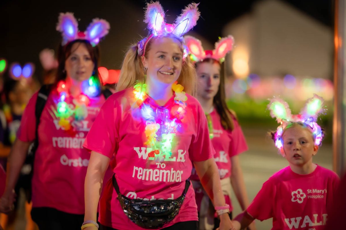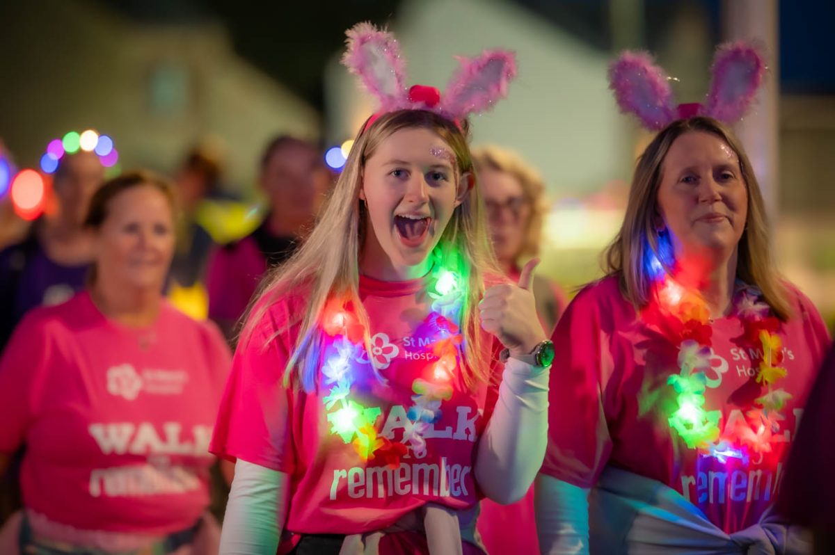 As the sun began to set, families and friends gathered with glowing bunny ears, photos, and stories of their loved ones. Everywhere you looked, you could see people embracing, laughing, sharing tears, and celebrating lives that will never be forgotten. It was a powerful reminder of why we do this walk each year — to honor, to remember, and to stand together.