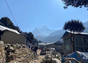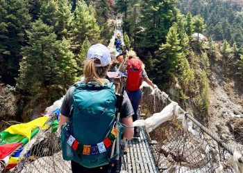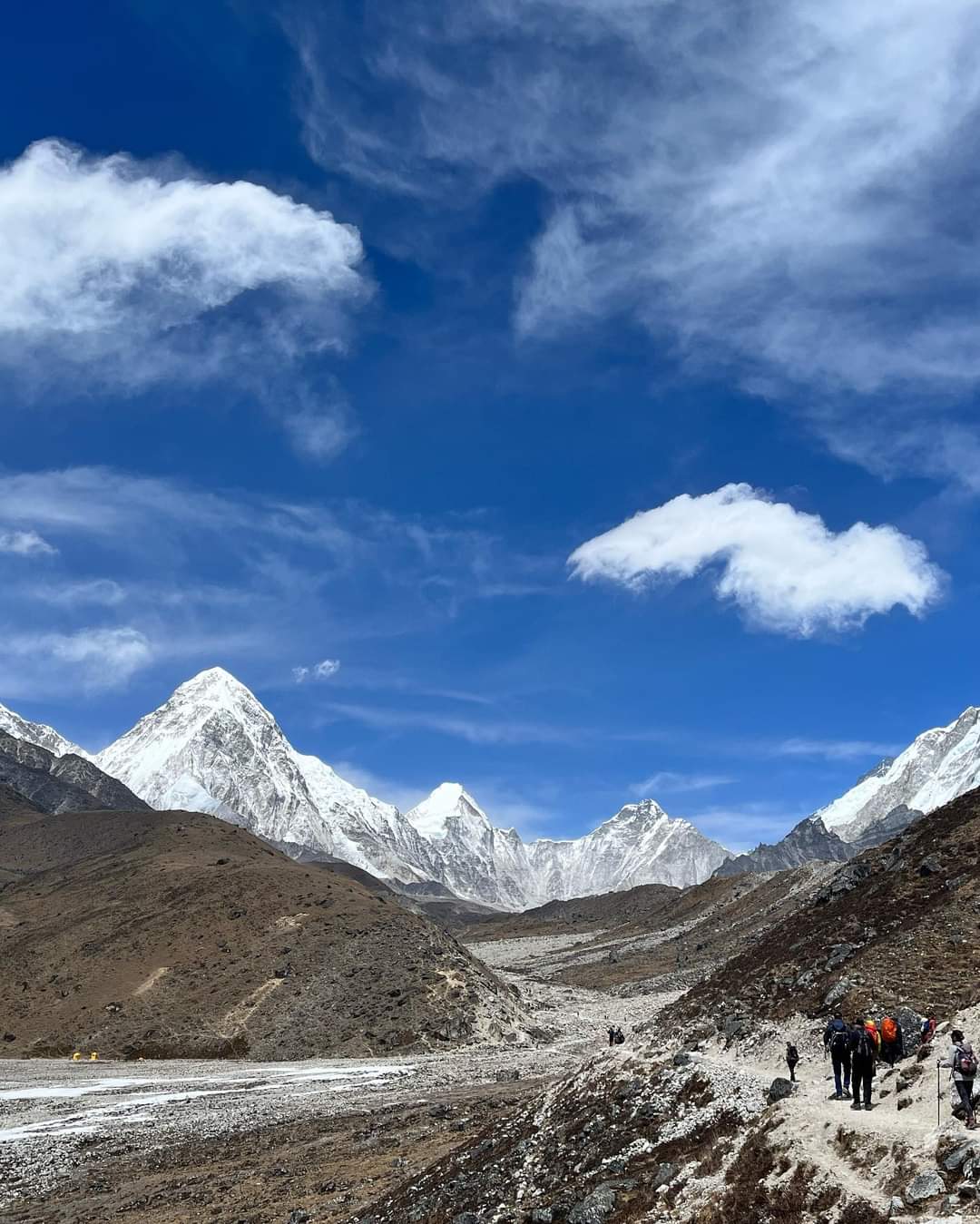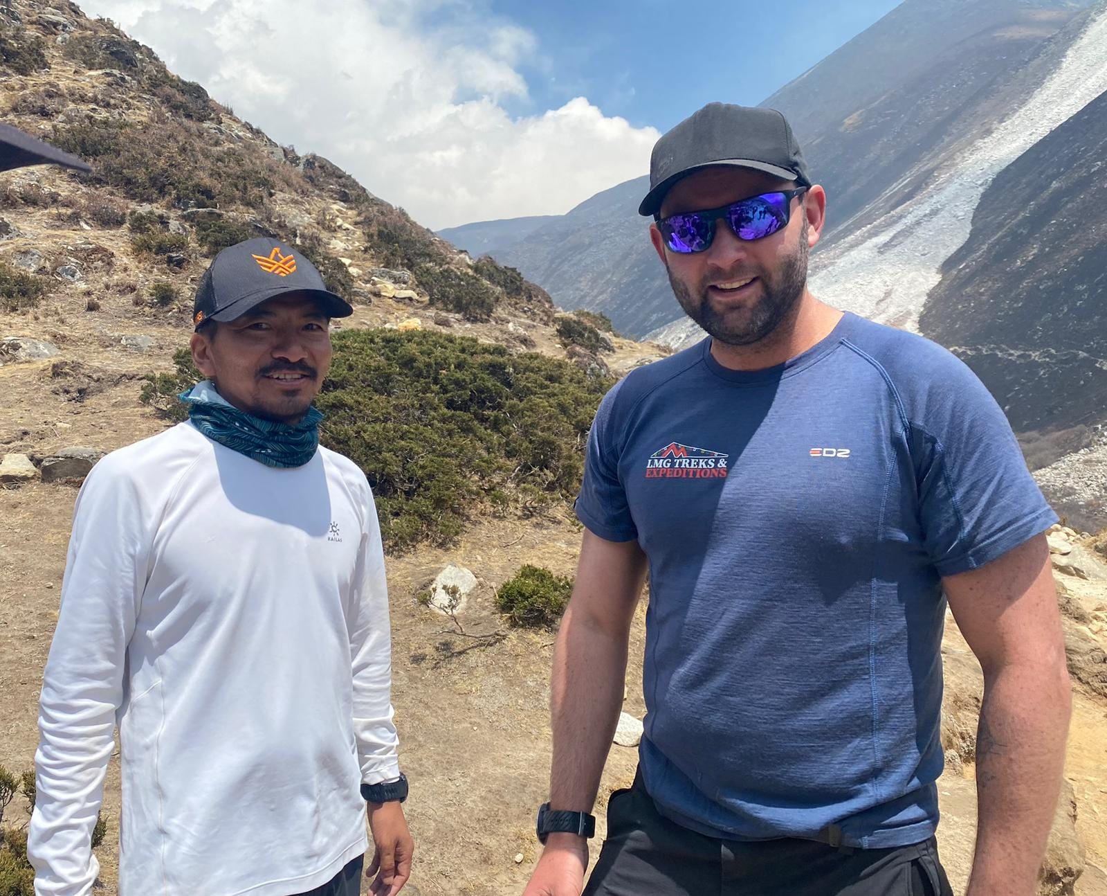 The walkers are being guided by Matt Le Voi from LMG Treks and Expeditions. Matt has taken these walkers under his wing and guided them through the beautiful forests, Sherpa villages, glacial moraines, and foothills to reach Everest Base Camp.