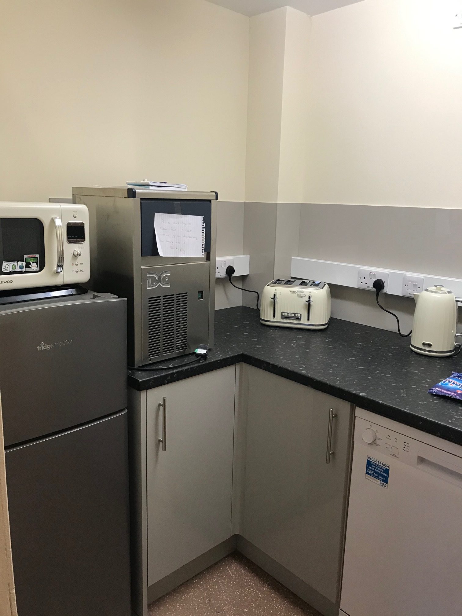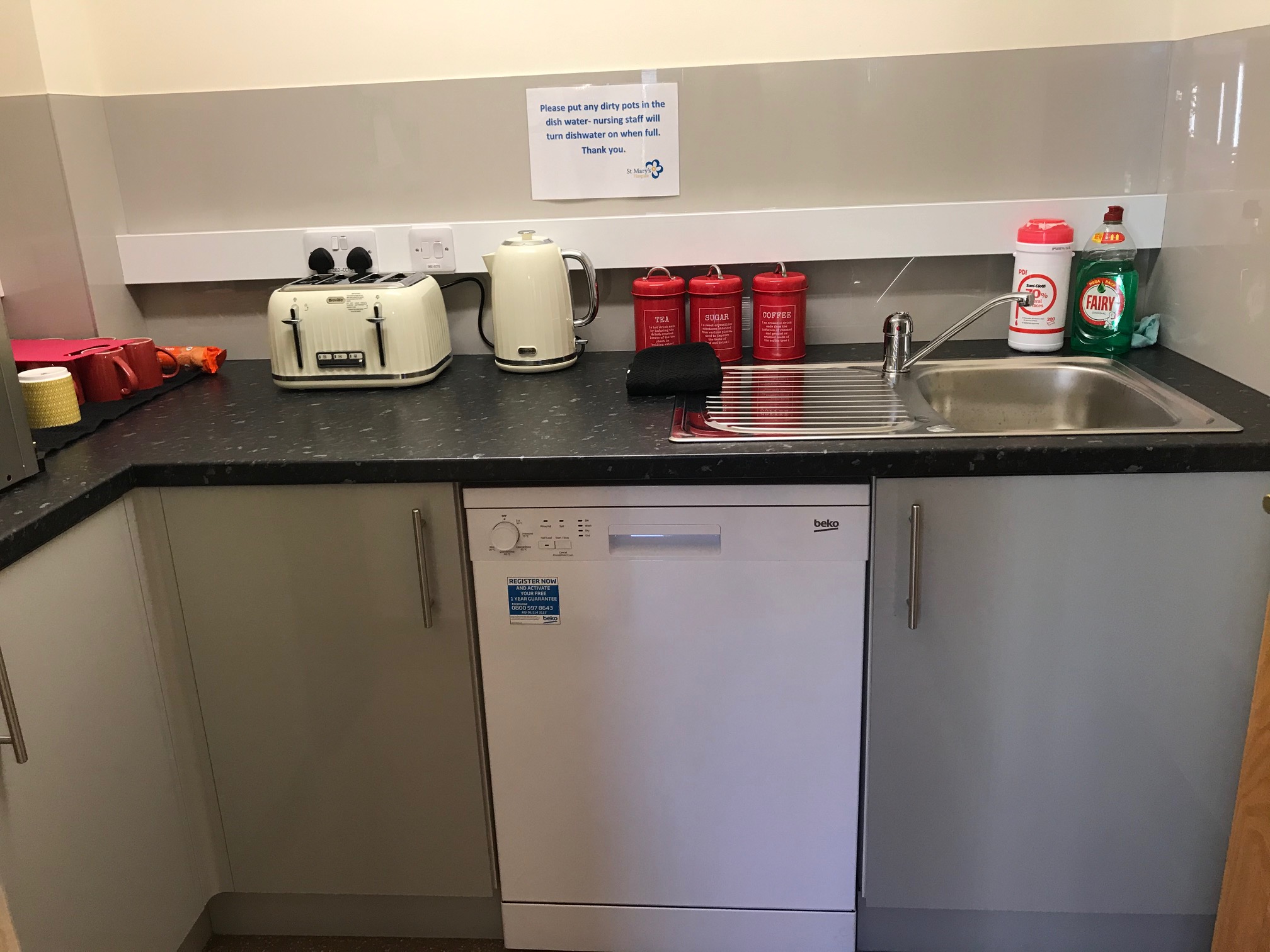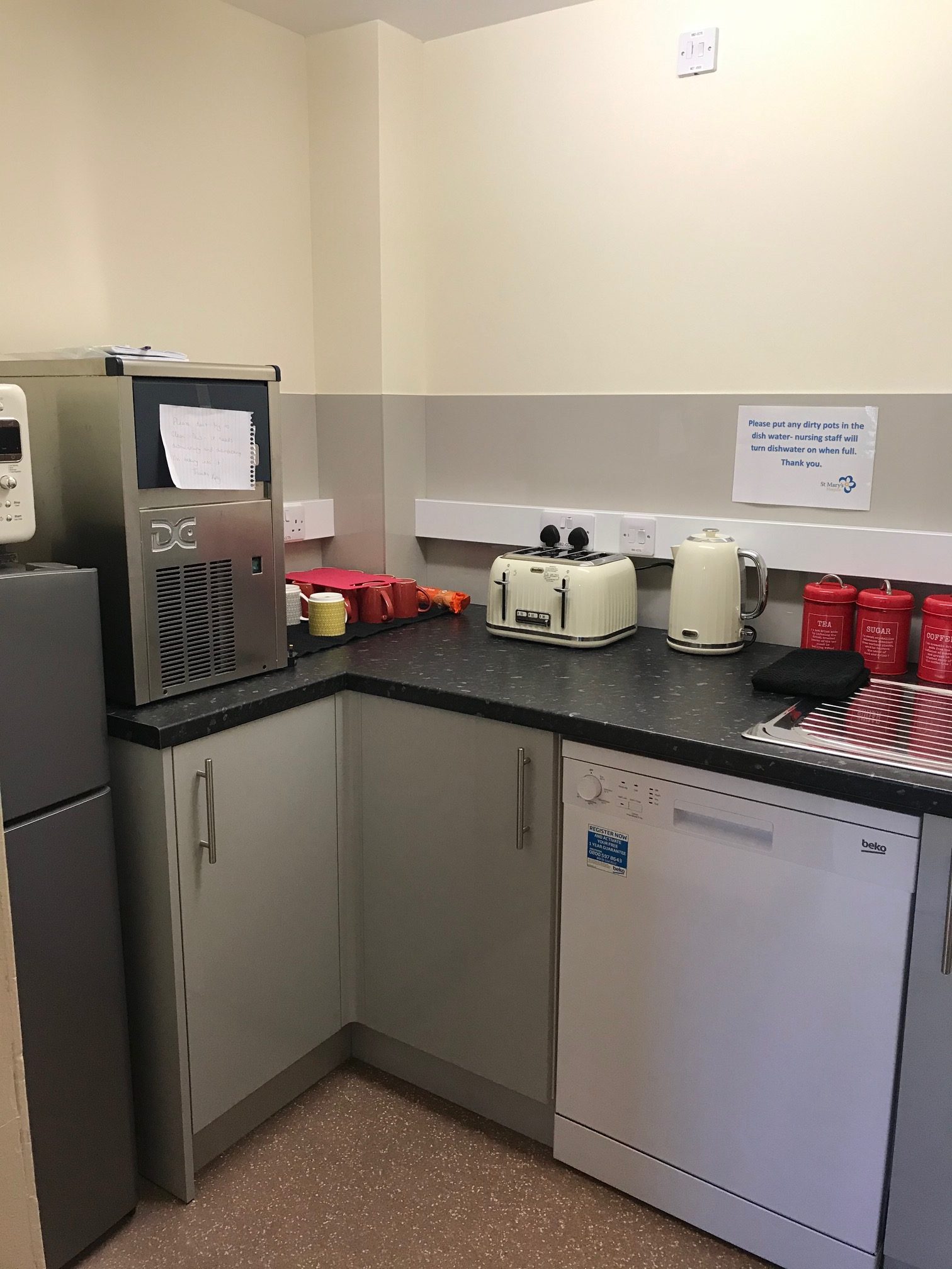Katy Millard, St Mary’s Health & Safety and Facilities Manager, who project managed the transformation said “We would like to thank the following companies for their great work during the refurbishment, some of whom continued under difficult circumstances: Bryan Moncur Painters & Decorators, A Barnes Electrical, Slade Plumbing & Heating, Justin McMullen & Keith Farish, Atlas Stern’s, Castle Alarms, Frank Edwards of Elliot & Edwards, Ocean Construction, Evalast Home Improvements Ltd., Mike Foster of SLDC Building Control, Travis Perkins, Nationwide Fire Training. The dedication of these firms really helped to ensure we could reopen our beds to patients. We also have our new visitor kitchen, built using the amazing donations from the Co-op Community Grant.”
